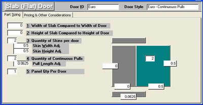 Slab... EuropeanThe same "Slab" for is quickly converted to European style door with HPL skins and continuous pulls. Simply add a quantity of Skins per door and Quantity of Continuous pulls... That's all there is to it.