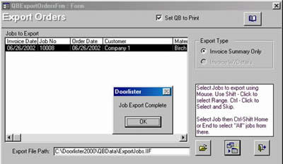 Now we have successfully exported the job(s) into the file “C:\Doorlister2000\QBData\ExportJobs.IIF”